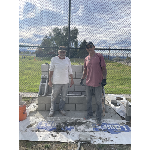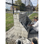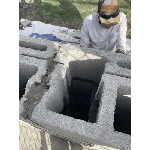 Photographs documenting the construction of the Butlerville Monument in 2025.